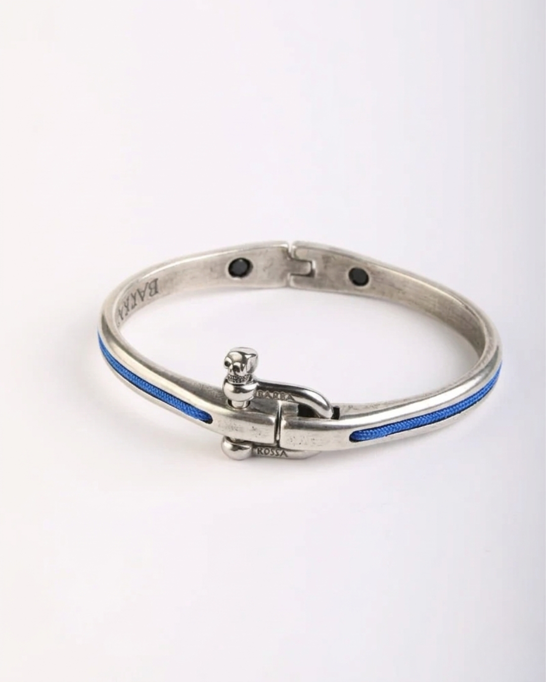 El cierre, un auténtico manille nautique, está rematado con nuestro icónico pasador en forma de calavera: un sello de identidad Barba-Rossa que desafía lo convencional y rinde homenaje al mar y a quienes se atreven a vivir con intensidad.