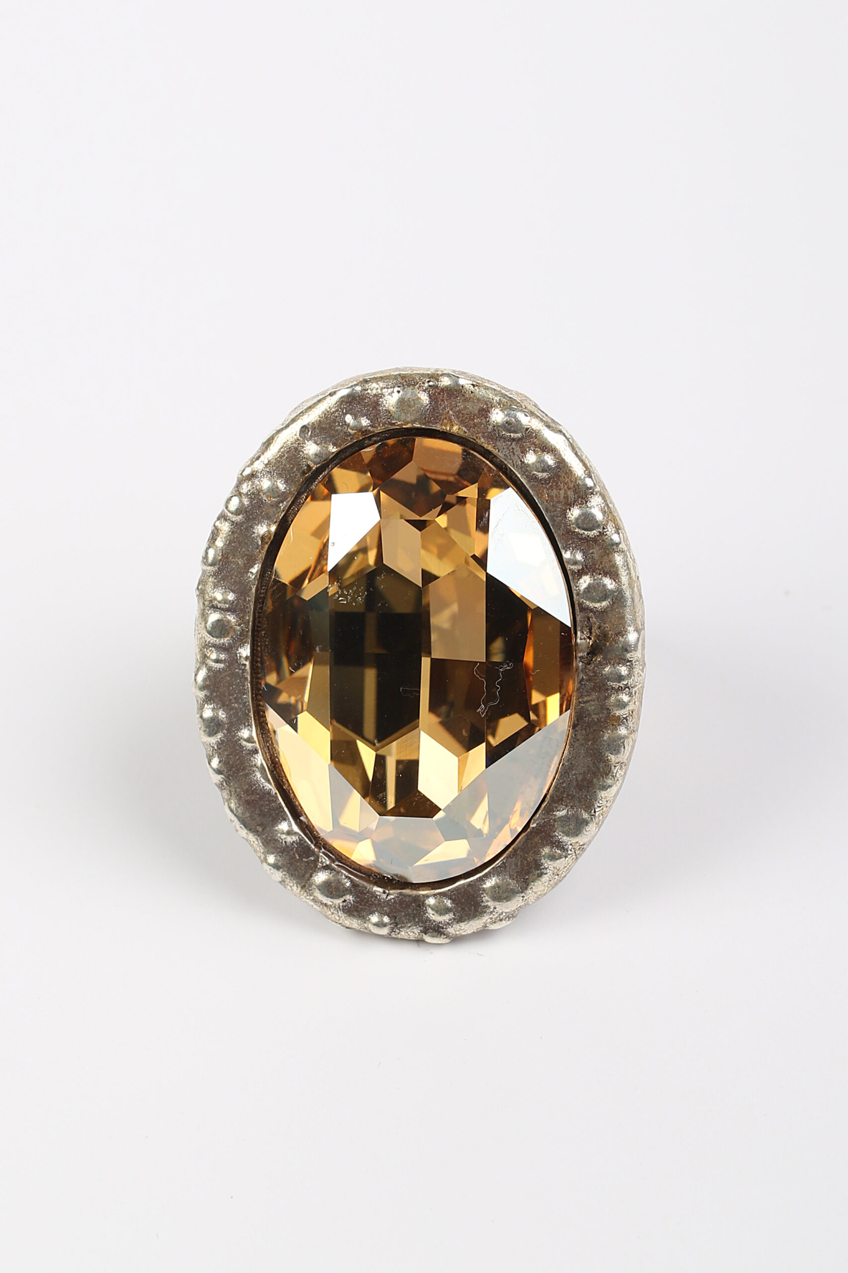 Anillo majestuoso , audaz y con un espíritu indomable, el Queen Golden Shadow es mucho más que un anillo: es una declaración de poder y rebeldía. Su diseño ovalado de gran tamaño alberga un espectacular Swarovski color esmeralda, cuyo brillo hipnotiza y seduce a primera vista.