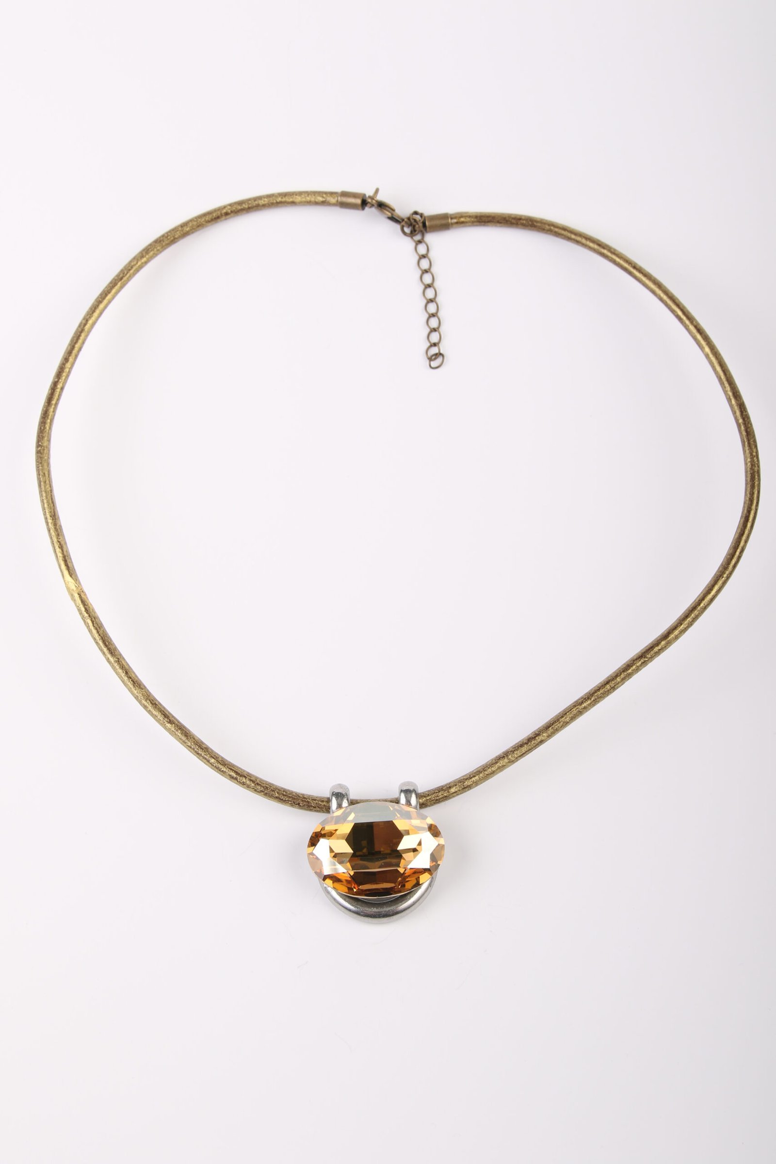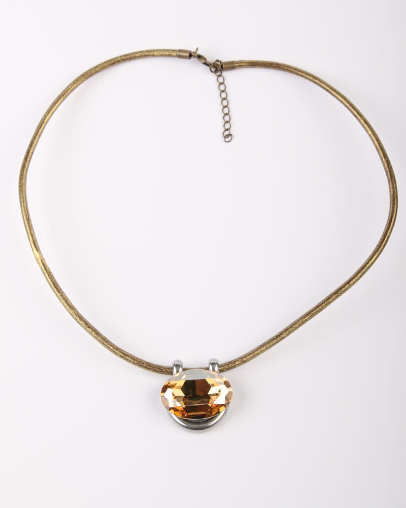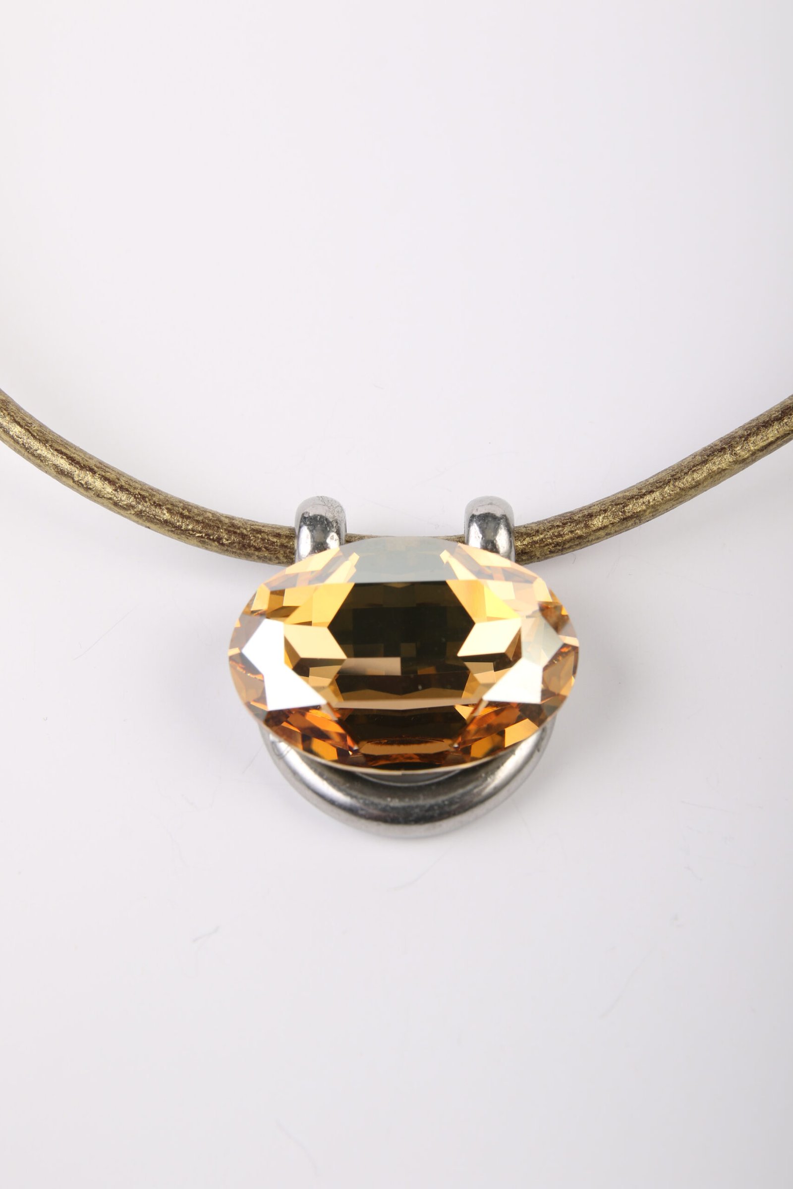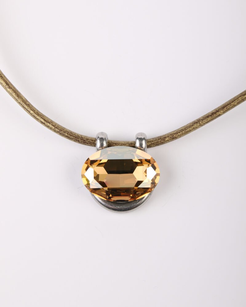Este colgante combina la fuerza de un grillete con la delicadeza de un cristal Swarovski ovalado, que refleja la luz con un brillo profundo y envolvente.