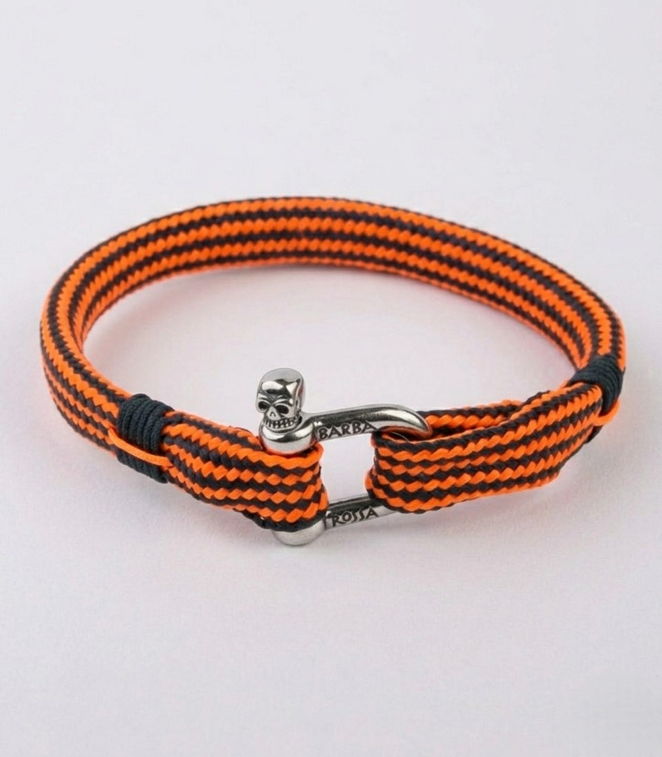 Pulsera náutica fabricada de forma artesanal en Menorca en color azul marino y rematada en rojo, una fusión de estilo y resistencia. Fabricada con cabo náutico de alta tenacidad, garantiza durabilidad y un ajuste cómodo. Su cierre en grillete de acero inoxidable con nuestra calavera Barba-Rossa aporta un toque robusto y sofisticado, evocando el espíritu aventurero del mar. Perfecta para quienes buscan un accesorio versátil, resistente al agua y al paso del tiempo. Además, cuenta con una garantía de 3 años, asegurando su calidad y fiabilidad .